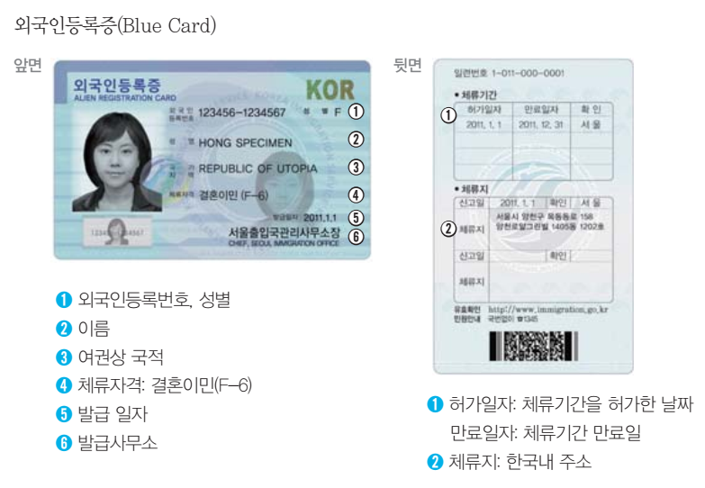 외국인등록증(Blue Card) Alien registration card