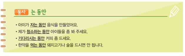 2) 다른 학생들이 수업을 듣는 동안 저는 일을 했어요.