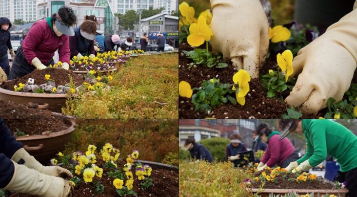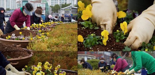 현장-근로자들이-경남-창원-진해구-북원로터리-화단에-꽃�...